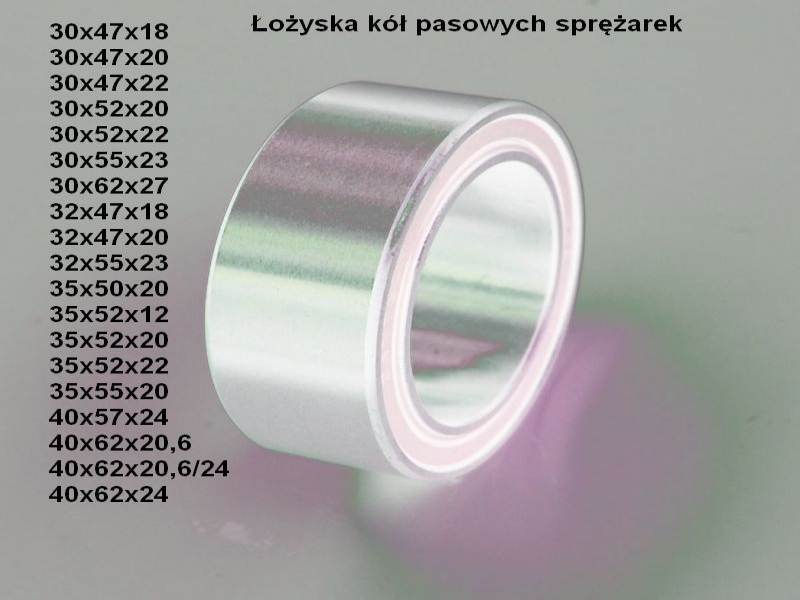 Łożyska kół pasowych Marka: Łożyska kół pasowych sprężarekOferujemy łożyska sprawdzonych producentów z Europy i Azji wszystkie produkty są testowane i sprawdzane.Nie prawidłowy montaż jest jedną z przyczyn uszkodzenia łożyska,do wyprasowania łożyska trzeba użyć tulei jako podstawki by nie doszło do skrzywienia koła pasowego,po jego wyprasowaniu usunąć występy po poprzednim zabezpieczającym zagnieceniu ( dremelem lub pilnikiem ) następnie podstawić podstawkę z tulei lub walca z drugiej strony koła by go nie pokrzywić przy wprasowywaniu, wprasować łożysko za zewnętrzną szalkę i zabezpieczyć przez zapunktowanie tulei.